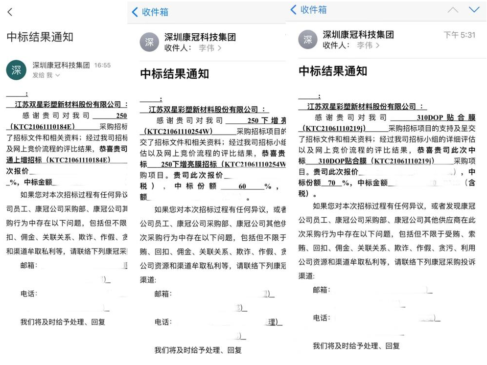 On June 11, 2021, our company participated in the bidding meeting of Shenzhen Kangguan Science and Technology Group. The company won the bid for three optical film products: 250 lower brightening film, 250 upper brightening film and 310DOP laminating film. Each product winning the bid won 60% - 70% of the market demand share of Kangguan Technology, playing a positive role in promoting the development of the company's optical diaphragm and the "99.666 Project".